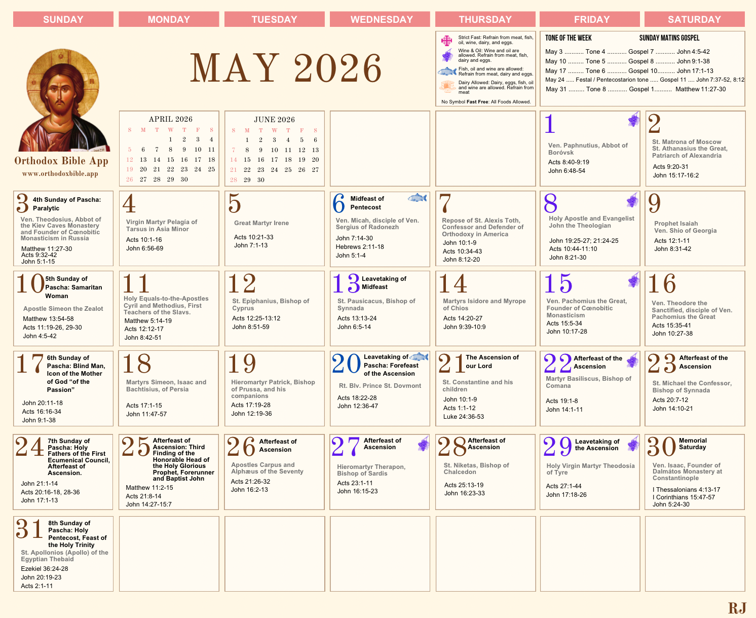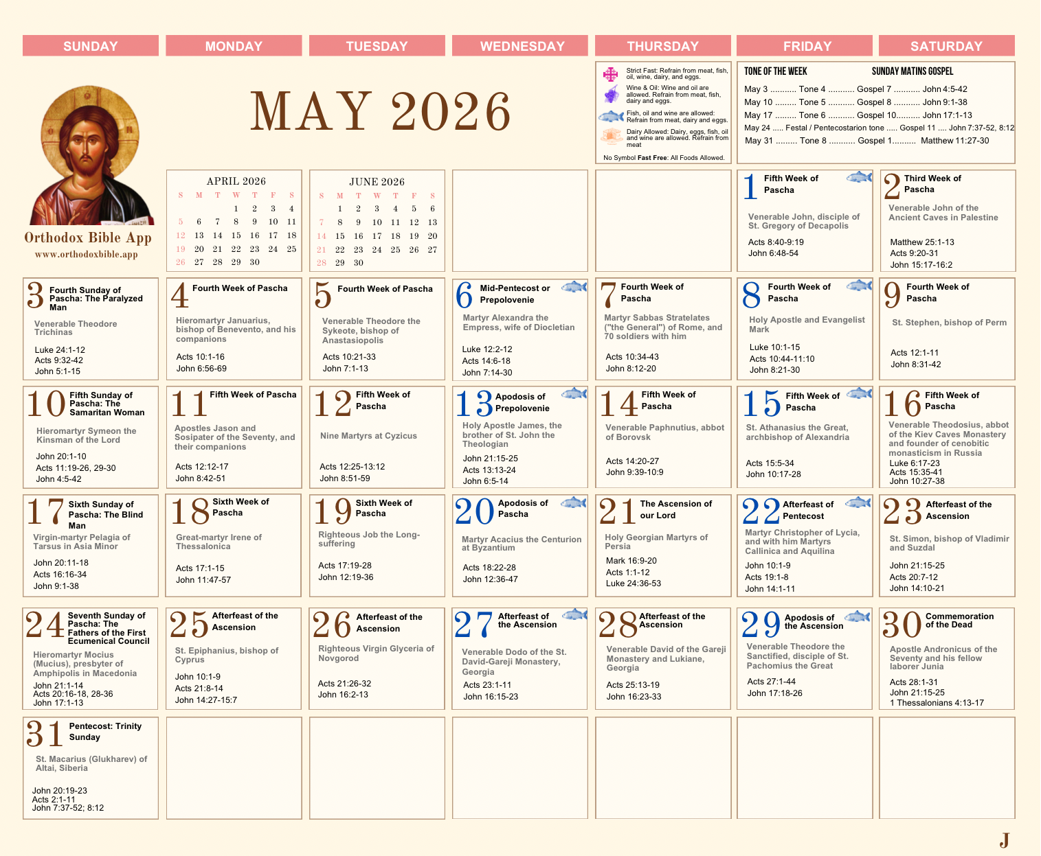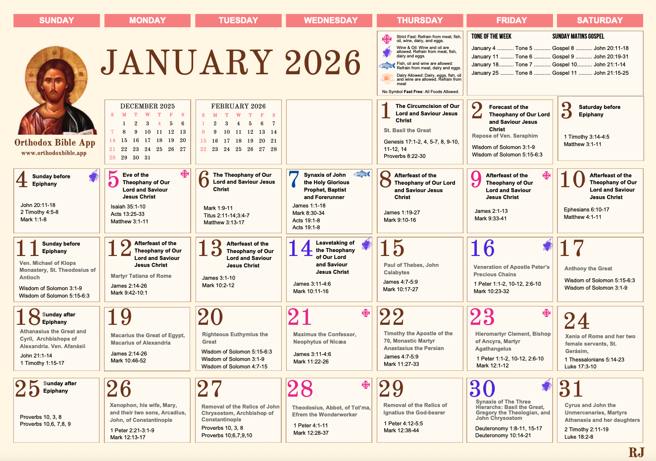 Orthodox Calendar 2026 — Monthly View